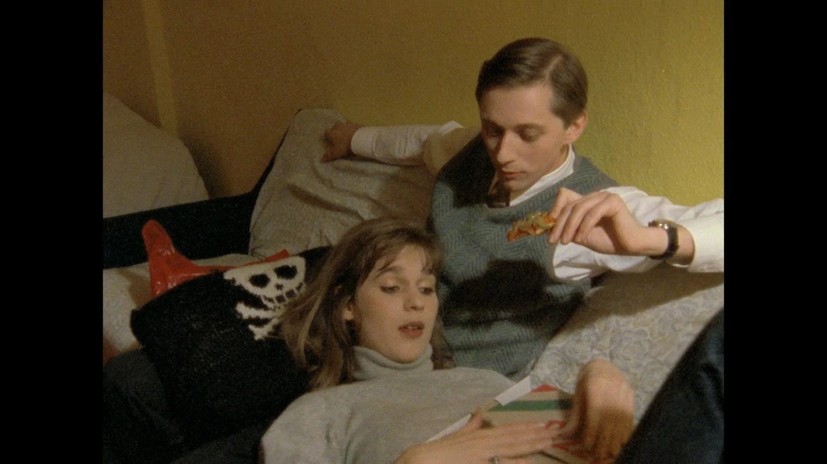Monika and Mark’s first date at the cinema is seeing a very strange film (and I’m saying that as a person who just watched Nekromantik 2). In the film, there is a naked man and woman, sitting at a table on a roof, with a spread of soft-boiled eggs in decorative egg cups covering the table. As they eat egg after egg, the man is monologuing at the woman about ornithology. She’s quietly nodding along, and keeping eye contact, occasionally making affirmative sounds. The man doesn’t even seem to care if she is interested, he has subscribed her to Bird Facts whether she likes it or not. After the movie, while Mark is cooking eggs for himself and Monika, he says he really enjoyed the film because it was different from the films he always has to watch for work. The way the man in the film-within-a-film carried on without caring about his partner's interest mirrors the way Mark expects Monika to fall in line with his expectations, regardless of her wants. Eggs are more than a symbol of fertility; they are a very necessary part of fertility. They are part of a woman, and the characters consume them without a second thought. When Monika consumes male body parts - not through eating, but through severing and savoring - it’s much more shocking. And look, I know that eating eggs from the grocery store is not the same thing as murder and/or desecrating a corpse. But in the symbols of the film, eggs show the way men’s desires are a given while women's desires are taboo and to be hidden.