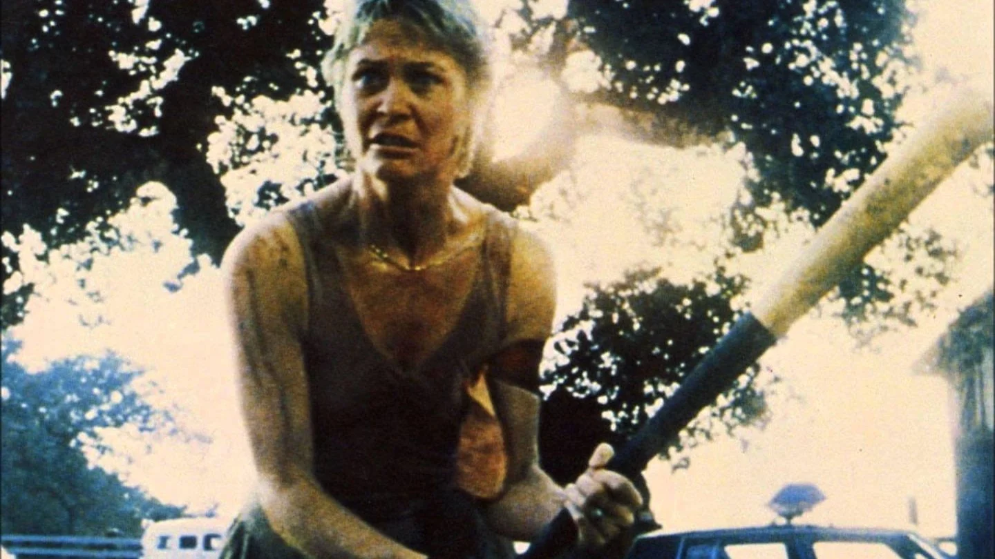 With Bannerman still taking his last breaths in the barn, Donna breaks free of the car. She snatches the baseball bat she had spotted earlier, beating and eventually stabbing Cujo with the splintered handle. Cujo appears dead, and so grabbing Bannerman’s gun, Donna smashes the rear windshield open and takes Tad to the safety of the farmhouse.