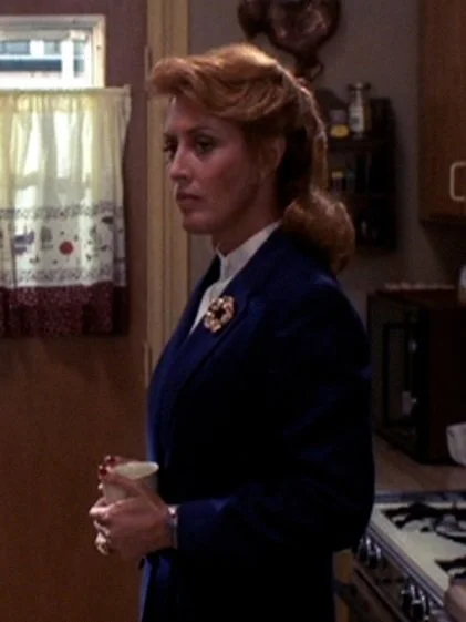 Marge is the perfect picture of a suburban housewife, with a crisp and clean outfit, and a perfectly put together hairdo. She’s ready first thing in the morning in the kitchen, ready to greet Nancy when she comes downstairs. At this point, she’s been able to block out the things that she and the other parents in the town did, but the further Nancy digs into Springwood’s past, the more Marge’s perfect mask starts to slip.