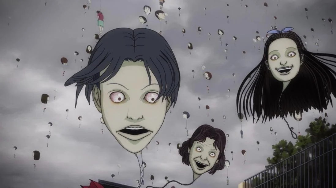 This is perhaps one of my favourites of the series; I was instantly sucked into the tragic story from the beginning. Japanese idol Terumi Fujino seemingly commits suicide, and the episode raises questions about the trauma of suicide, idol worship, and mass hysteria. Balloon-shaped human heads with a hanging noose at the end of torment a city and lead to the mass suicide/murders of everyone in the affected area. The heads are of actual people who live in the town, track them down, and hang them. The hellish imagery of head-shaped balloons that hang people is the stuff made of nightmares and classic Ito. This story made me nostalgic for Ito’s classic mangas.