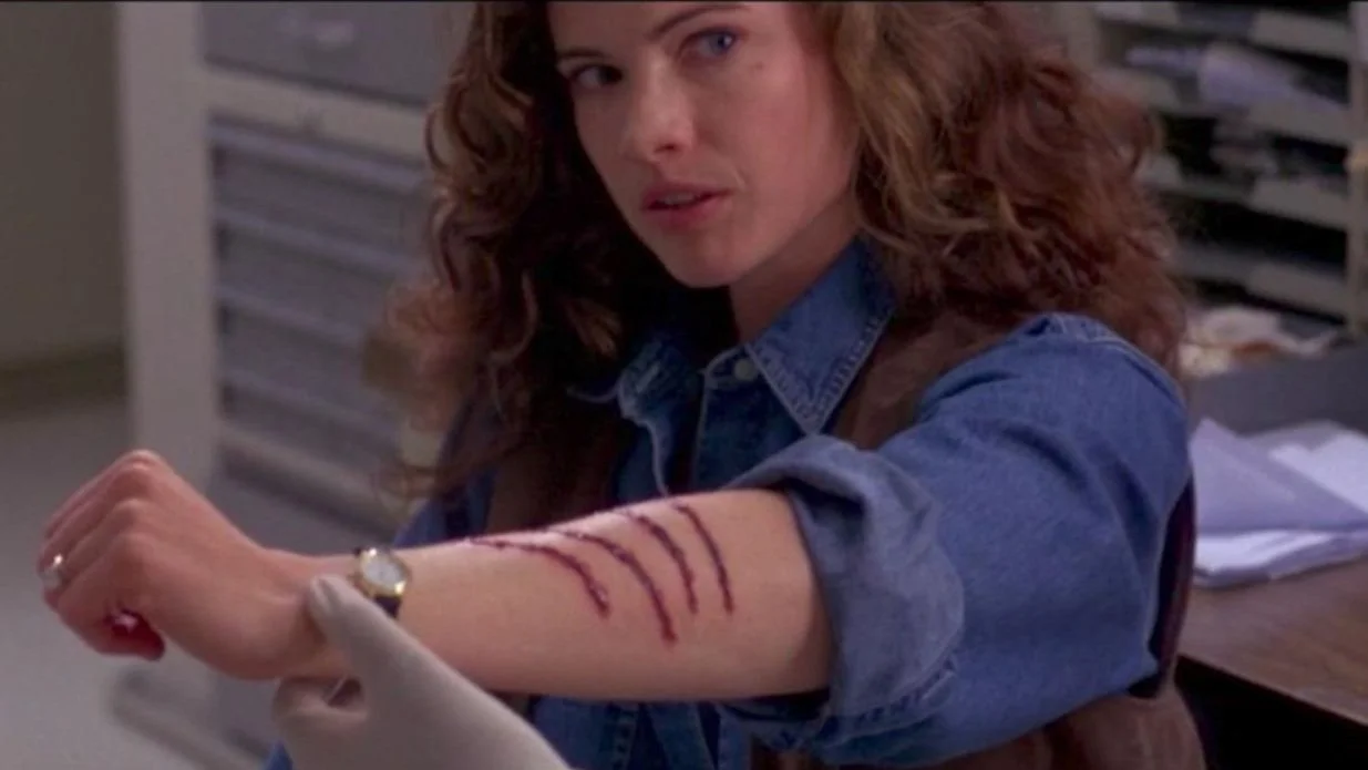 Even though everyone else is quick to write off Chase’s death as a simple car accident, Heather begins to suspect something darker is at work, especially when she sees the giant claw marks on her dead husband’s chest. It’s at this point that Heather has to deal with the same looks and judgements that her character Nancy did in A Nightmare on Elm Street as she desperately tries to convince those around her that Freddy is real.